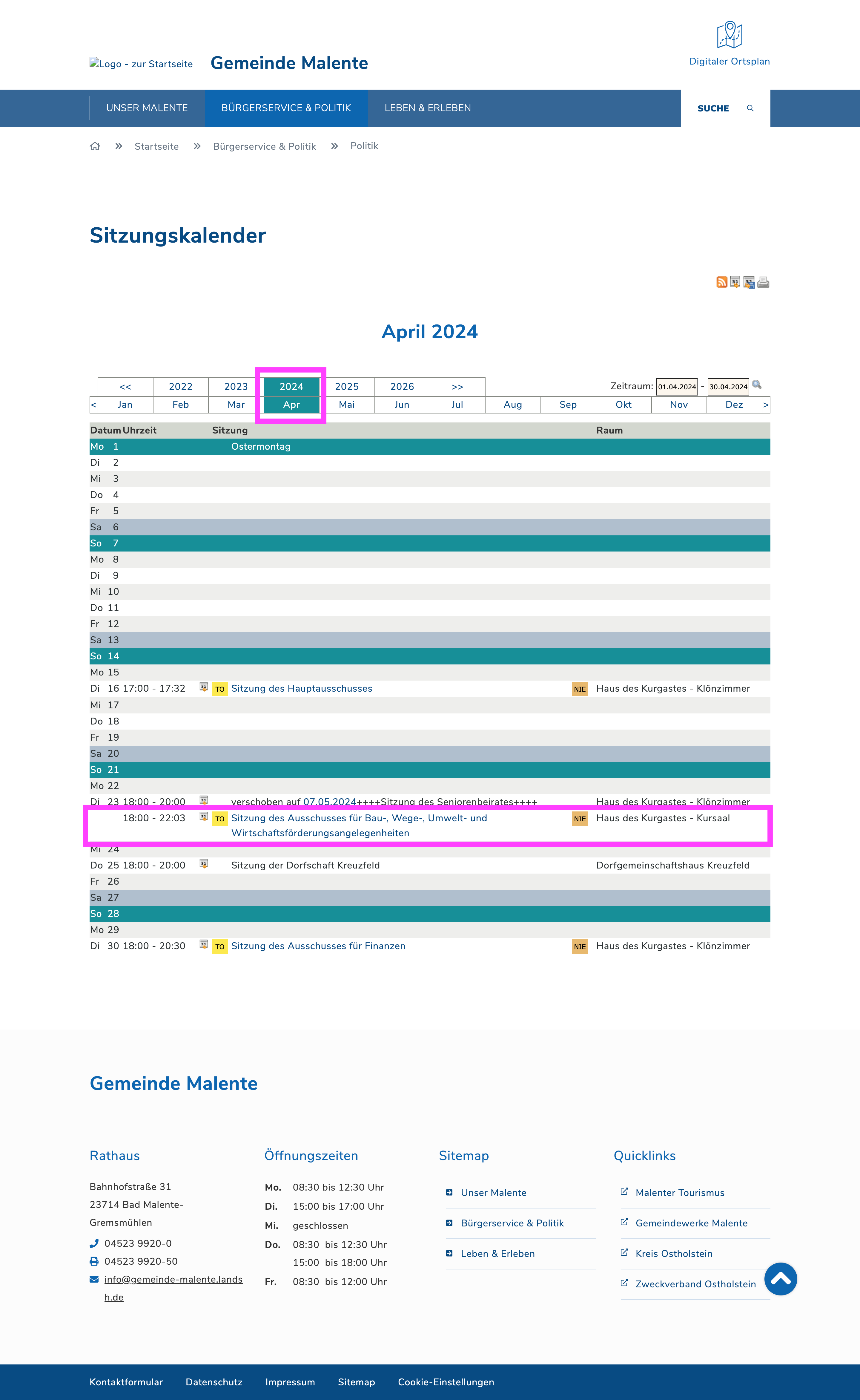 Die Antwort: Sie stammen von der Website der Gemeinde Malente. Allerdings fällt es wohl vielen Interessierten schwer, diese Informationen dort selbstständig anzusteuern. Daher wollen wir hier einmal ausführlicher erläutern, wie das geht.